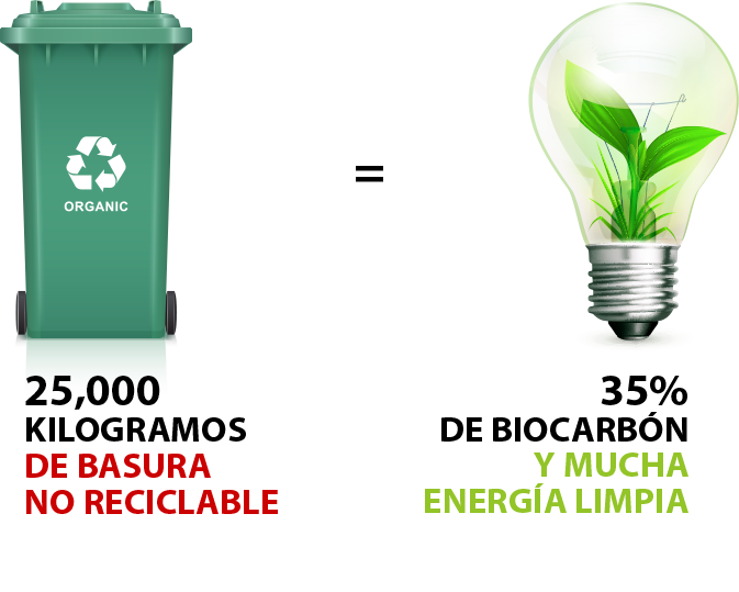 Nuestras plantas generan: gas para su operación, biodiésel para comercialización, uso como combustible vehicular o en la generación de energía eléctrica, y biocarbón que puede ser usado para cocción apto para consumo humano, como mejorador de suelos o para procesos industriales, incluyendo la generación de energía. Esto, a diferencia de otras soluciones, ofrece los siguientes beneficios: autosustentabilidad, ahorro y alta productividad.